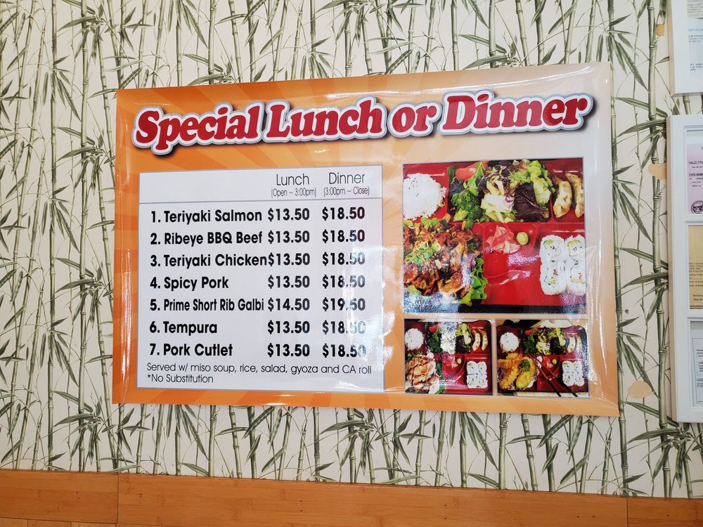 Served with miso soup, rice, salad, gyoza, CA roll